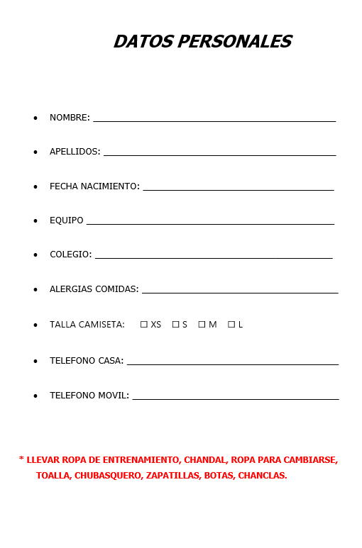 –Mínimo de inscritos: 25 niños-as